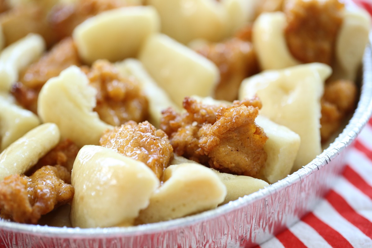 - Куриные кусочки в панировке: Bare или куриные наггетсы Kirkland Signature от Costco работают лучше всего, но подойдут любые слегка панированные замороженные куриные кусочки.