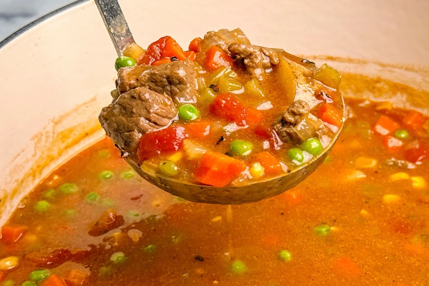 Рецепт тушкованого м’яса від Джоанни Гейнс з її кулінарної книги Magnolia Table обіцяє ситну страву, натхненну восени. Однак реальність відрізняється від очікувань. Це не густе, млосне на повільному вогні рагу, а легший, бульйонистий варіант з великою кількістю овочів – кукурудзою, горошком, помідорами, морквою, селера і картоплею, що робить його швидше наваристим супом, ніж традиційним тушкованим м’ясом.